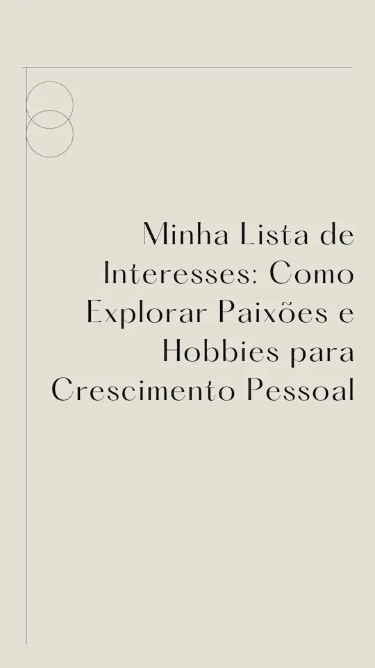 Independentemente do tipo de interesse que você cultiva, lembre-se de que eles são uma parte essencial da sua identidade. Eles moldam como você interage com o mundo e, mais importante, como você se vê. Então, comece hoje a explorar e expandir sua própria lista de interesses – e permita-se ser surpreendido pelo que o futuro tem a oferecer.